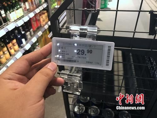 無(wú)人超市中,每款商品上都貼有類似的RFID標(biāo)簽。中新網(wǎng) 吳濤 攝