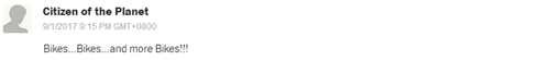 網(wǎng)友Citizen of the Planet:“自行車……自行車……我要更多自行車?。。 ?/font>