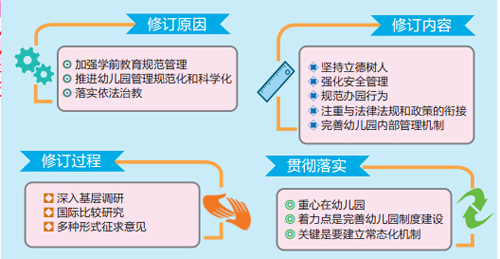隨著經(jīng)濟(jì)社會(huì)的發(fā)展,教育改革的不斷深入,學(xué)前教育事業(yè)發(fā)展迅速,幼兒園教育的內(nèi)外環(huán)境和條件也發(fā)生了巨大變化。因此,《規(guī)程》需要在新的形勢(shì)下進(jìn)行調(diào)整,不斷推進(jìn)幼兒園內(nèi)部管理和辦園行為的規(guī)范化,促進(jìn)幼兒園保教質(zhì)量不斷提升。