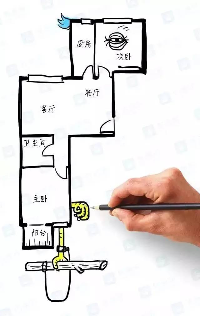 4、從進門開始,要到臥室有三個拐角,實際空間利用率降低,主臥離衛(wèi)生間實在太遠,冬天想上個廁所真是折磨人了。