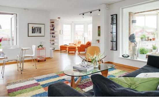 5.我們在一個(gè)整體的家居 環(huán)境中,我們面對的不單單是一個(gè)客廳,或者一個(gè)臥室這樣單獨(dú)的空間,而是在一個(gè)家中不停的在每個(gè)空間中穿梭,所以當(dāng)你進(jìn)入一個(gè)空間時(shí),它所呈現(xiàn)的明度和色相會受到你剛離開空間的明度和色相的影響,即使你的目光已經(jīng)離開,前面看到的色彩也不會立即從腦海中消失。比如說可能你的客廳比較暗,在一些臥室或者其他空間的裝飾上的明度和飽和度還有一些裝飾上做一些調(diào)整,讓從別的空間進(jìn)入客廳時(shí)候的感覺是更輕松,更明快,這樣也是一種從視覺上提高的一種方法。再具體說可能臥室里的背景稍微深一點(diǎn),你的客廳背景淺一點(diǎn),進(jìn)入客廳以后會有明亮的感覺,比如臥室里的色彩相對豐富飽和度高一些,客廳的整體色調(diào)相對淺一些,進(jìn)入客廳后你的視覺會有一種放松,明快的感覺。