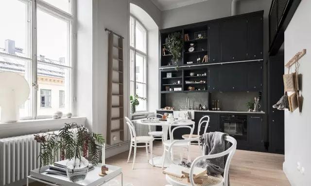 挑高天花板,具有質(zhì)感的涂料,這所優(yōu)雅的黑白公復(fù)式寓,經(jīng)過改造后巧妙地運用色彩及各種細節(jié)裝飾,將北歐的簡約與新古典風(fēng)格進行了全新的詮釋。