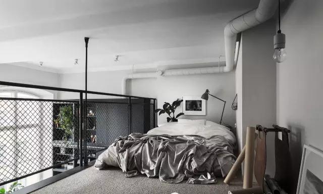 二樓就的空間直接作為私人臥室,空間內(nèi)首先安排好大件家具,小物件的選擇和擺放給屋主更多的發(fā)揮?;疑{(diào)臥室給人營造出放松和舒適的氣氛。