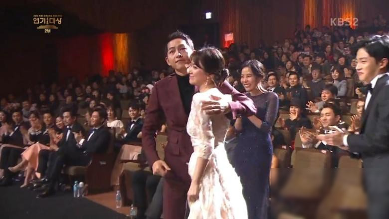 2016年KBS演技大賞最重要大獎(jiǎng)由《太陽的后裔》宋仲基和宋慧喬獲得,兩人一上臺(tái)皆難掩激動(dòng)情緒,忍不住哽咽。宋慧喬對(duì)于獲得“最佳CP獎(jiǎng)”發(fā)表感言,“和喜歡的人一起領(lǐng)獎(jiǎng),真的很開心”,在主持人全炫茂的詢問之下,滔滔不絕地稱贊宋仲基就和劇中的劉時(shí)鎮(zhèn)一樣,“幽默、聰明、真誠(chéng)又溫柔”,宋仲基則回贊對(duì)方,“真的非常美麗又大方”,他們更現(xiàn)場(chǎng)重現(xiàn)了“什么血型”的撒嬌,彼此溺愛的眼神超吸睛。