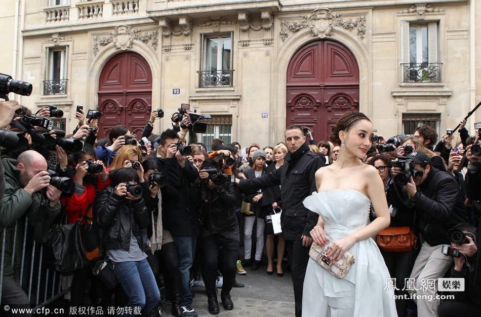 當(dāng)?shù)貢r(shí)間3月2日,巴黎,2012巴黎時(shí)裝周(秋冬):某品牌秀場,中國明星扎堆看秀。李小璐“阿凡達(dá)”發(fā)型個(gè)性亮相,身著月牙色抹胸裙甜美,“童顏巨乳”成功吸睛。張雨綺和Angelababy都身披皮草亮相彰顯貴氣。林鵬發(fā)型夸張,粗黑鬢角酷似貓王氣場十足。社交名媛、珠寶設(shè)計(jì)師萬寶寶也亮相了秀場。