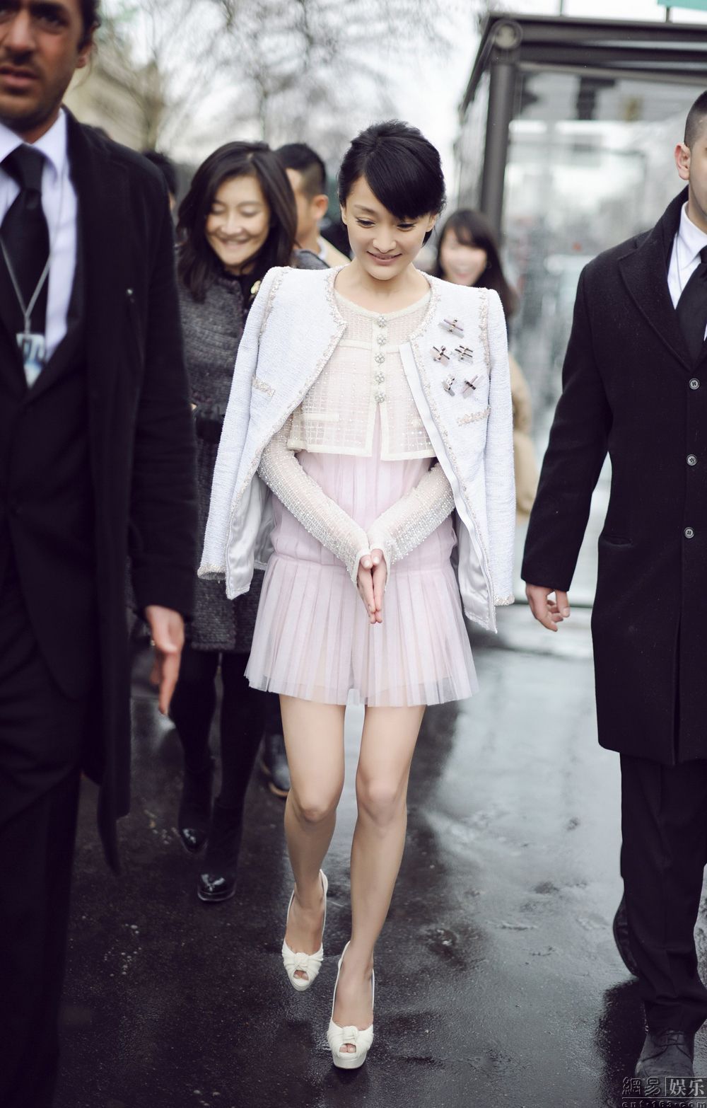 網(wǎng)易娛樂3月12日報道(文/小易) 日前,堪稱全球時尚潮流風向標的巴黎時裝周已經(jīng)正式落下帷幕。但盛典結(jié)束,余溫猶在。近日,華裔女星周迅在時裝周上的一張疑似夢露走光照在網(wǎng)絡上瘋傳。照片中,周迅身著香奈兒頂級手工定制服飾,珍珠薄紗短外套搭配短裙的清新造型讓人眼前一亮。其中,微風掃過,周迅的裙擺飛揚,而她輕輕用手撫住裙擺并擺出搞怪神情堪稱神來之筆。