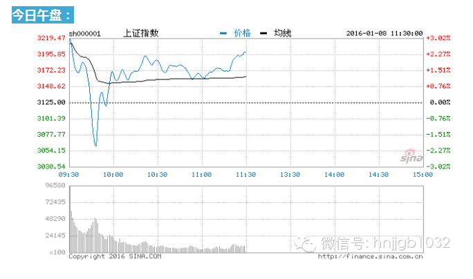 滬深兩市大幅高開,然而一開盤即迅速回落跳水,滬指盤中從漲3%下挫翻綠至跌2%,創(chuàng)業(yè)板一度跌至5%;兩市觸底后大幅反彈,快速走高,午前金融股接力拉升,滬指欲沖3200點(diǎn)關(guān)口。