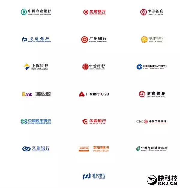 中國銀行、中國農(nóng)業(yè)銀行、中國工商銀行、中國建設銀行、招商銀行、中信銀行、浦發(fā)銀行、興業(yè)銀行、廣發(fā)銀行、廣州銀行、上海銀行、平安銀行、中國民生銀行、中國光大銀行、中國郵政儲蓄銀行、交通銀行、北京銀行、寧波銀行、華夏銀行。