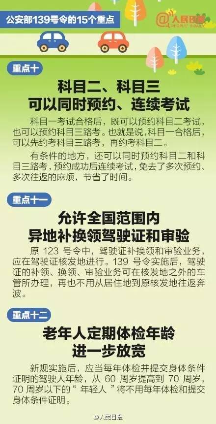 4月1日起,公安部《機動車駕駛證申領(lǐng)和使用規(guī)定》將正式實施。今后,駕駛?cè)丝荚嚳梢跃W(wǎng)上自主預(yù)約,駕駛證在全國可以異地年審,每年提交駕駛證身體條件證明的年齡由60周歲改為70周歲……