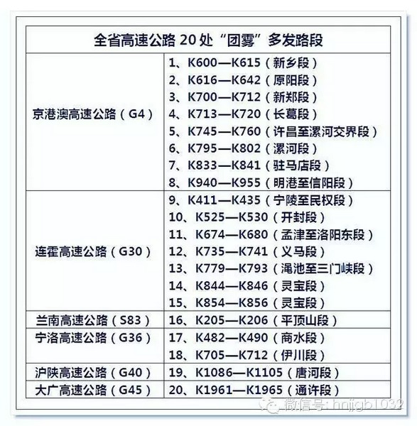 全省高速公路20處“團(tuán)霧”多發(fā)路段提醒