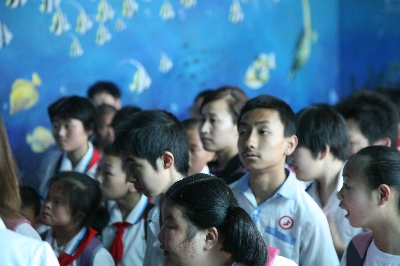 這批特殊孩子都是鄭州市二七區(qū)輔讀學(xué)校的在校學(xué)生,能夠在2012年六一兒童節(jié)來臨之際前往海洋館游玩,是大家多年以來的共同愿望。在三個多小時的時間里,信息廣播的編輯、記者、主持人領(lǐng)著智障、自閉癥兒童參觀了各個館舍。海豚館表演結(jié)束后,工作人員破例讓部分自閉癥孩子近距離與海豚接觸。由于海豚能發(fā)出多種波長的高頻超聲波(200至350千赫),對人的中樞神經(jīng)有激活作用,對自閉癥患兒有一定療效,孩子們臉上都露出燦爛的笑容,很多孩子都流下了激動的淚水。