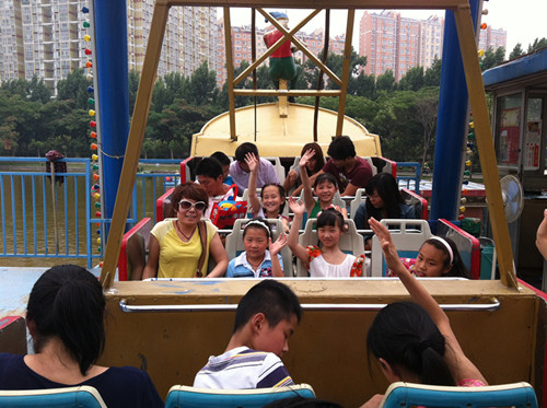 一進入園區(qū),孩子們就歡呼著向旋轉木馬跑去,我們的記者和孩子們一起坐在旋轉的馬背上,和孩子們一起沉浸在節(jié)日的歡樂中。