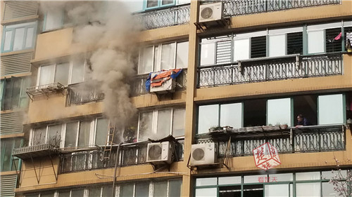 平時安靜的武漢市東湖花園,下午2點08分,一棟住宅樓突發(fā)火情。