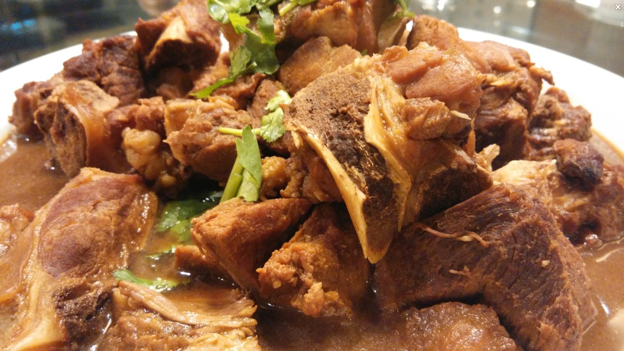 這道菜,我小時候是吃過的,現(xiàn)在吃起來口味依舊,心里忽而很暖。大肉與骨頭之間沒有太多的牽連,很利口,肉質也煮的剛好,嚼起來很有質感汁水淋漓,骨關節(jié)處的軟骨很脆,有一種別樣的滋味,看著咕嘟嘟冒著的熱氣,食欲也開始沸騰了。