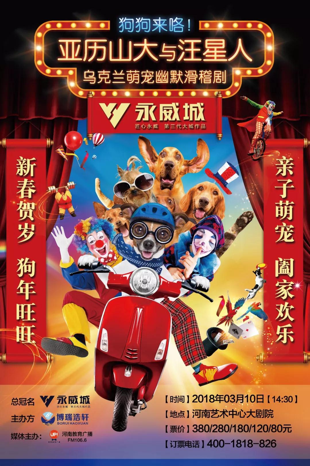 狗年來啦!狗年當(dāng)然要看汪星人主演的劇啦。2018年3月10日(周六)河南藝術(shù)中心開年大戲——烏克蘭萌寵幽默滑稽劇《亞歷山大與汪星人》首次來華,空降鄭州。一起喜樂過旺年啦!