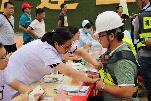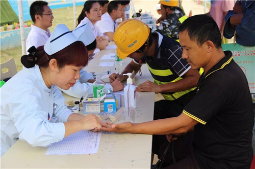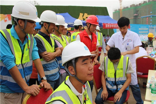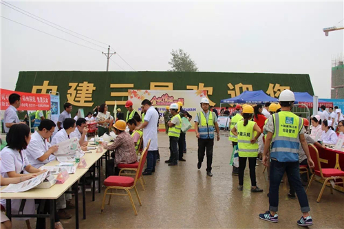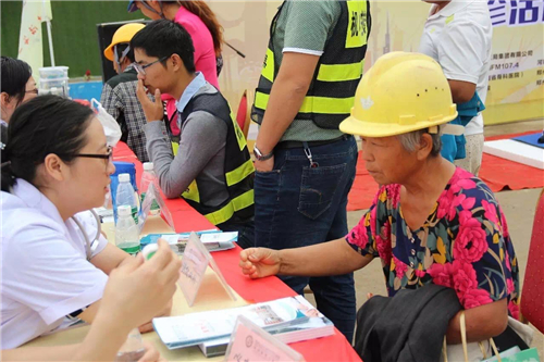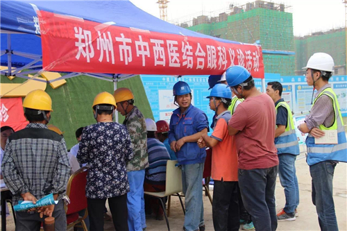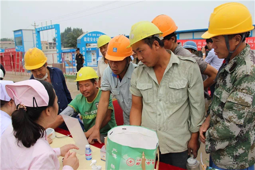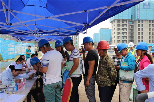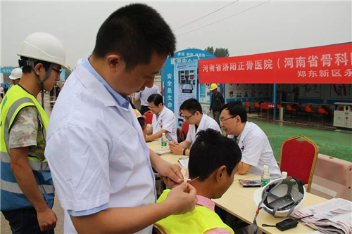 一大早,五大醫(yī)院的白衣天使們,就來到了中建三局鄭州航空港棚戶區(qū)改造的施工現(xiàn)場。開始準備工作,希望能夠更好地為建筑工人們做健康檢查。