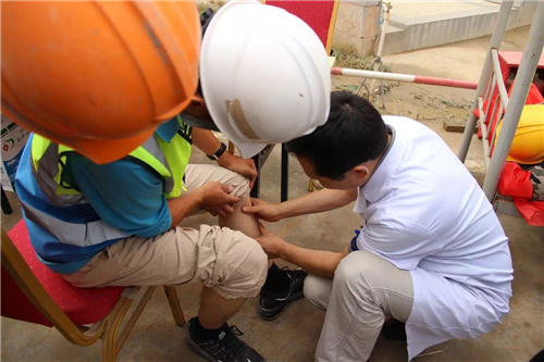 醫(yī)生們一邊操作,一邊講解,工人們有不明白的,還可以現(xiàn)場提問。幾乎每一位認真學(xué)習(xí)的建筑工人都想一試身手,醫(yī)生則在一旁一對一指導(dǎo)。