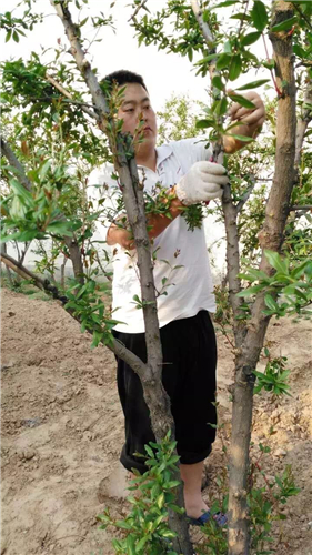 農業(yè)生產過程的管理,對石榴的品控尤為關鍵。既然是農民就要會種地,種石榴。要學習扦插樹苗、修剪果樹、施肥、翻地。父輩是靠經驗,小綱他們照著做,慢慢發(fā)現經驗有時也會錯,每個人說法不一,這就要靠自己一點點去實踐,他們也會把自己摸索的技術通過萬氏石榴合作社的微信公眾號分享給更多人。