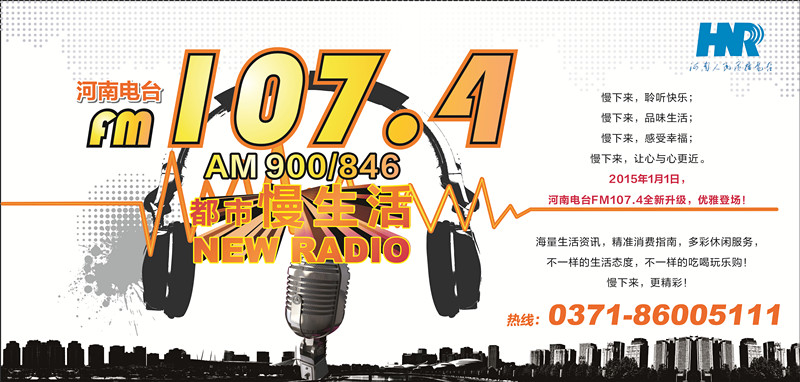 2015年1月1日,河南電臺(tái)FM107.4慢生活NewRadio全新升級(jí),優(yōu)雅登場(chǎng)!海量生活資訊,精準(zhǔn)消費(fèi)指南,多彩休閑服務(wù),不一樣的生活態(tài)度,不一樣的吃喝玩樂(lè)購(gòu)!慢下來(lái),我的“心”常態(tài)!河南電臺(tái)1074慢生活NewRadioFM107.4 AM900/846)。
