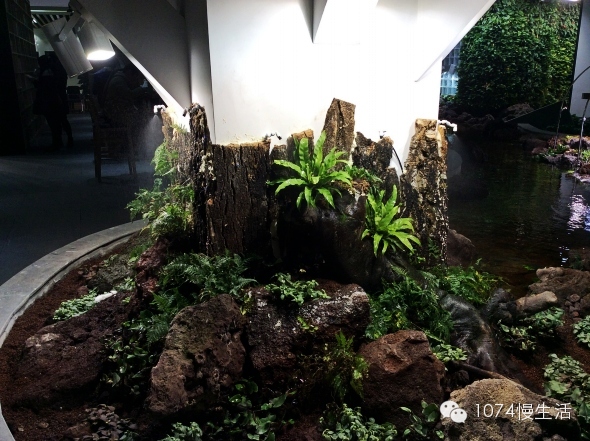 書架間隙,大片的綠色植被,墻上全都是鮮活的植物,目之所及,除了書,就是綠色。