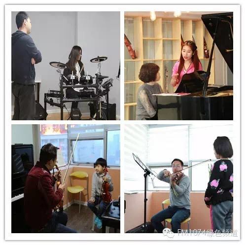 先到上課區(qū)參觀一下,一間挨一間的音樂教室承載的是一個又一個的音樂夢想。這些教室里有聲樂課、鋼琴課、小提琴課、吉他課、架子鼓課、古箏課……只要你想得到的樂器,這里都能學(xué)習(xí)。
