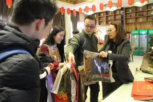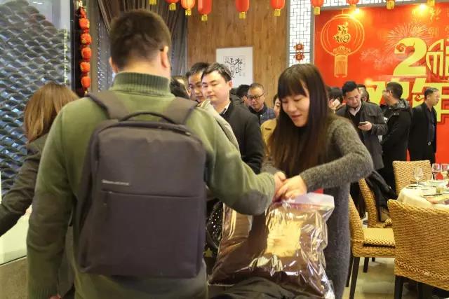懇談會接近尾聲,1074團隊的雁南、劉楠、鶴鳴,為大家分發(fā)伴手禮。當然這都是由當天的各位老板提供的。