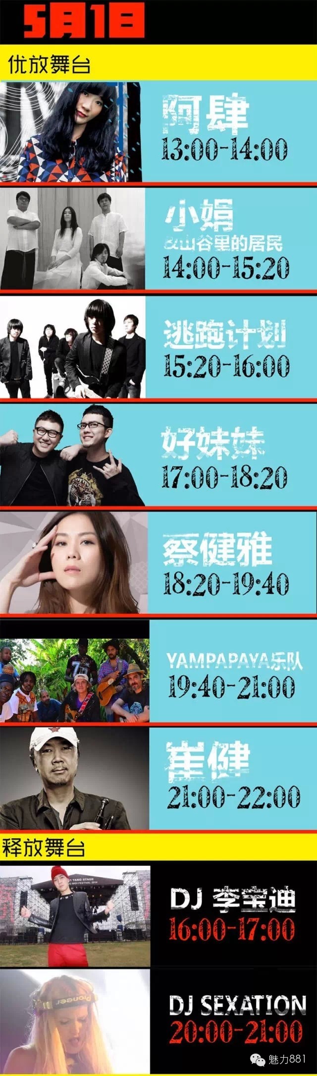 5月1日!本周五!也就是明天!真的就是明天!優(yōu)放音樂(lè)節(jié)就要火爆來(lái)襲啦!小魅優(yōu)放全攻略,帶你玩轉(zhuǎn)音樂(lè)節(jié),小伙伴們速速get起來(lái)吧!