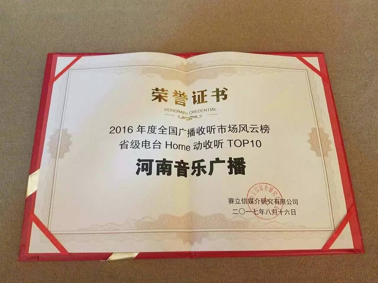 2017年8月16日,賽立信2017年客戶年會(huì)在寧夏回族自治區(qū)銀川市隆重開(kāi)幕。來(lái)自全國(guó)各地的近百家電臺(tái)的200位廣播人參加融媒高峰論壇,聆聽(tīng)了廣東廣播電視臺(tái)副臺(tái)長(zhǎng)趙隨意先生,蜻蜓FM副總裁郭嘉先生,荔枝FM總裁何欽龍先生,遠(yuǎn)譽(yù)中國(guó)陳志堅(jiān)先生,華中師大教授、碩士生導(dǎo)師王麗女士的精彩演講。在晚上舉行的2016收聽(tīng)風(fēng)云榜頒獎(jiǎng)典禮上,魅力881河南廣播電視臺(tái)音樂(lè)廣播榮獲home動(dòng)收聽(tīng)榜top10。