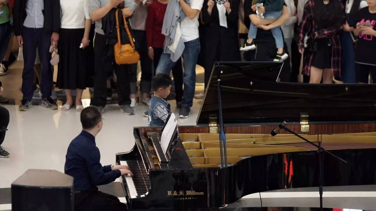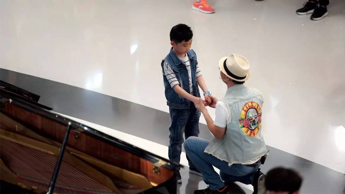 看著孩子還是不說話,旁邊的鋼琴師就在這時(shí),彈奏了起來……