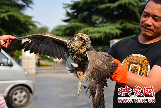 映象網(wǎng)快訊(記者 邱延波 文/圖)獵隼,大型猛禽,國家二級(jí)重點(diǎn)保護(hù)動(dòng)物。6月15日,中牟一農(nóng)民竟然在蒜地里發(fā)現(xiàn)一只受傷的獵隼。