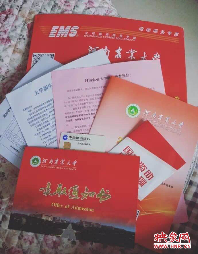 省內(nèi)部分高校寄出的錄取通知書內(nèi)均附有銀行卡