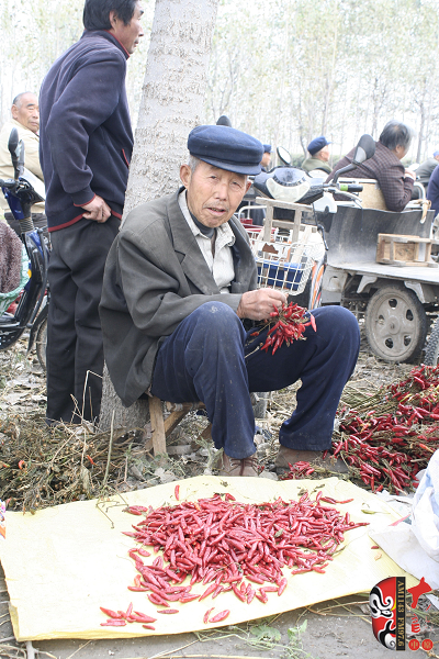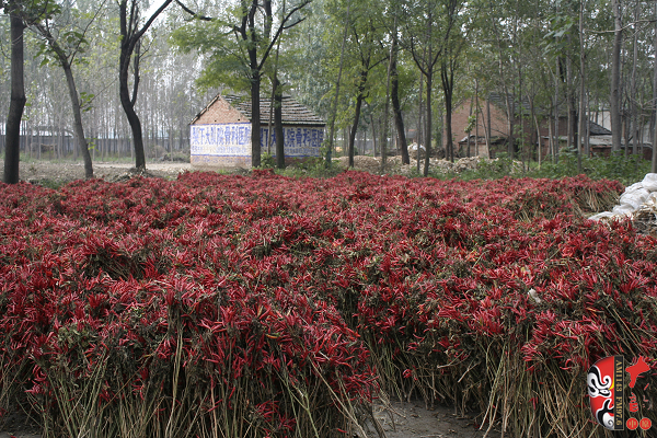 一邊看戲一邊摘辣椒