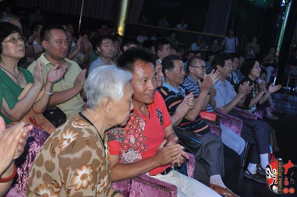 在當(dāng)天的演出中,除了關(guān)小鳳的精彩演唱之外,中國戲劇梅花獎得主、豫劇名丑金不換,陳門再傳弟子、中國戲劇梅花獎得主徐俊霞,關(guān)靈鳳親傳弟子霍梅英,戲曲名票龐笑天、吳素芹等也表演了各自的拿手好戲,為關(guān)小鳳助興演出。原西安獅吼劇團(tuán)的高材生、陳素真大師的學(xué)生陳素英今年78歲,在豫劇《三上轎》中她扮演婆婆,為關(guān)小鳳甘當(dāng)綠葉,其老到的表演也獲得了戲迷的熱情掌聲。鶴壁市豫劇團(tuán)團(tuán)長、豫劇名丑金不換剛剛擔(dān)任完河南省第七屆青年演員大賽的評委,就不辭勞苦地趕到演出現(xiàn)場。他介紹說,自己和關(guān)小鳳是封丘于店戲校的同學(xué),當(dāng)年他們那一屆學(xué)生當(dāng)中關(guān)小鳳是表現(xiàn)最優(yōu)秀的。關(guān)小鳳經(jīng)歷坎坷,但對藝術(shù)卻非常執(zhí)著,看到老同學(xué)的精彩表現(xiàn)他非常高興,希望關(guān)小鳳能把祥符調(diào)陳派藝術(shù)發(fā)揚(yáng)下去,祝福她在藝術(shù)道路上越走越好!
