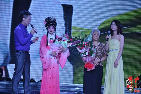 在6月16日舉辦的關(guān)小鳳個(gè)人戲曲專場中,關(guān)小鳳之女、24歲的張聰表演了豫劇《情斷狀元樓》“打神告廟”及《抬花轎》的“坐轎”兩折戲。畢業(yè)于河南省藝校的張聰現(xiàn)場表演稍顯稚嫩,但也獲得了觀眾的熱情鼓勵。張聰在接受記者采訪時(shí)說,自己戲校畢業(yè)之后到了福建省一閩劇團(tuán)工作,已經(jīng)有五、六年未接觸豫劇了。媽媽歷經(jīng)艱辛把自己帶大,特別不容易,這次為了支持媽媽的專場演出,她專程回河南、花十天時(shí)間趕排了兩折戲……在張聰表演完《抬花轎》的“坐轎”一折,一位身穿狀元紅袍、手捧鮮花、操南方口音的英俊小伙上臺向“周鳳蓮”求婚,經(jīng)張聰介紹,觀眾才豁然明白,英俊小伙乃她的老公,結(jié)婚時(shí),媽媽關(guān)小鳳因?yàn)槊τ诠ぷ魑茨軈⒓?,借此現(xiàn)場要補(bǔ)行跪拜大禮,以感謝母親的養(yǎng)育之恩。此情此景,讓現(xiàn)場不少觀眾為之動容。