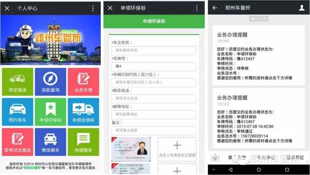 不出家門,也可以領(lǐng)到綠標(biāo)自2015年7月27日起,鄭州車管所聯(lián)合鄭州環(huán)保局在微信公眾平臺(tái)推出了“微信申領(lǐng)環(huán)保標(biāo)”的服務(wù),如果您是“6年免檢”車輛的車主,即可通過(guò)微信平臺(tái)在線申領(lǐng)綠色環(huán)保標(biāo),申領(lǐng)成功后,會(huì)有專門的快遞人員送標(biāo)到家。
