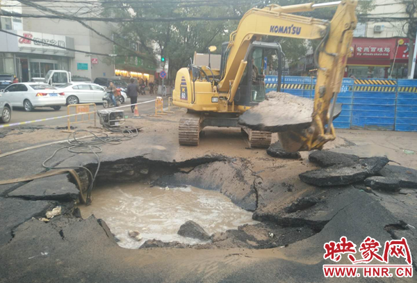 鄭州自來水公司迅速組織維修人員到場搶修。負(fù)責(zé)該區(qū)域維修任務(wù)的三強(qiáng)公司政七街維修隊維修一班第一時間趕赴現(xiàn)場止水、搶修。維修人員分班作業(yè),一組擺放警示標(biāo)志,協(xié)調(diào)交警封閉道路,一組緊急關(guān)閉相關(guān)閥門實施止水,調(diào)運搶修機(jī)械、安排送水車趕往現(xiàn)場。