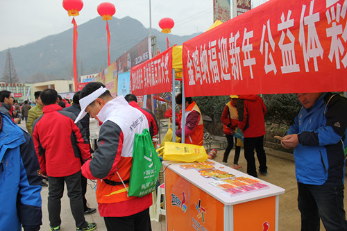 全民健身活動連年開展,并且已經(jīng)形成全國聯(lián)動,區(qū)域互動,百姓自動的蓬勃景象,這離不開體彩彩民朋友點滴的愛心匯聚和體彩人不分晝夜的堅持拼搏,為了展示體育彩票的公益性和玩法樂趣,信陽分中心還在開幕式現(xiàn)場搭建了四張大型展板,“公益體彩 快樂操場”“送體育進鄉(xiāng)村”“體彩?新長城助貧困大學(xué)生項目”“貧困受災(zāi)地區(qū)愛心捐贈”等等,散發(fā)出一縷縷公益光芒,溫暖著寒冬里登山人的心。 “河南體彩攜手京東購物送300萬大樂透代金券”“購買頂呱刮彩票 搶百萬紅包 贏華為手機活動”,特別吸引了年輕登山人群的圍觀和關(guān)注。信陽分中心開展戶外即開型銷售主推“金雞納?!毙履晏灼?,雞年登雞公山購買“金雞納福”頂呱刮彩票有著特殊的意義,購買滿30元還有登山“能量包”相送,為健身登高增添動力。