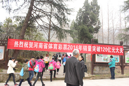 2017年1月1日元旦佳節(jié),“中國體育彩票”全國新年登高健身大會(華中主會場)暨信陽新年登雞公山健身大會“精彩開幕,來自社會各界的3000余名群眾、體彩代表及健身愛好者參加活動。新年登高意義深遠,在參與全民健身鍛煉體魄的同時,還能帶來美好的希望。在協(xié)辦單位河南省體育彩票管理中心的指示下,體彩信陽分中心組織了80名網(wǎng)點業(yè)主組成代表隊參賽,并在開幕式現(xiàn)場舉行了多種形式的宣傳活動。