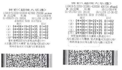 11月10日,幸運彩民來到河南省體彩中心,手持兩張大樂透彩票辦理兌獎。一張票以單式5注50倍追加投注,共250倍;另一張票為單式5注30倍追加投注,共150倍,兩張票分別在不同的網(wǎng)點購買,合計中得當(dāng)期追加投注三等獎400倍,獎金218萬元。