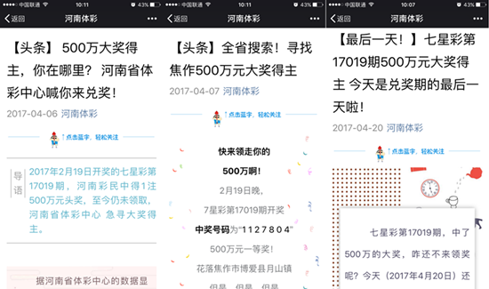 大獎中出之后,中獎人一直沒有到河南省體彩中心兌獎,而60天的兌獎有效期卻在一天一天流逝,眼看2017年4月20日的最后兌獎期限將至,為了更好的保護(hù)彩民利益,省體彩中心自2017年4月6日開始,通過省市網(wǎng)絡(luò)、報紙、廣播、官微、體彩銷售網(wǎng)點廣播消息和尋人啟事等多種形式發(fā)布消息,努力尋找和提醒中獎得主。
