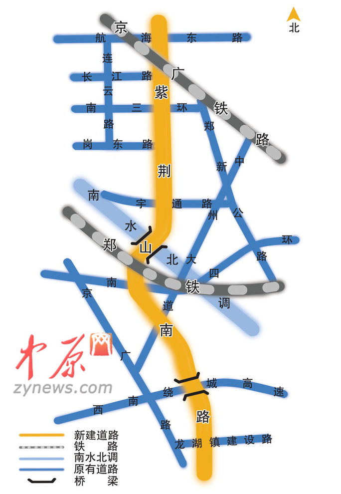 紫荊山南延道路的打通將鄭州市區(qū)與新鄭龍湖緊密連接起來,該工程預(yù)計到2016年主體完工,屆時,龍湖大學(xué)城的學(xué)生通往鄭州市區(qū)將更為便利,而鄭州市民去往新鄭機(jī)場也多了一條捷徑。