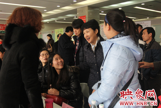河南省婦聯(lián)副主席庫(kù)鳳霞與現(xiàn)場(chǎng)導(dǎo)師以及求職者交流