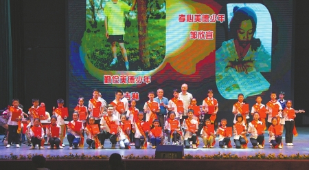 5月31日,自貢市舉行慶?!傲弧眹H兒童節(jié)文藝演出,榮縣長山鎮(zhèn)五通小學校二年級的鄒心宜等30名少年被授予“美德少年”稱號,成為自貢未成年人學習的先進典型榜樣,被全場的小觀眾熱烈“點贊”。會上,號召全市廣大未成年人學習“美德少年”的先進事跡,從自己做起、從小事做起、從點滴做起,在家做個好孩子、在校做個好學生、在社會做個好公民。