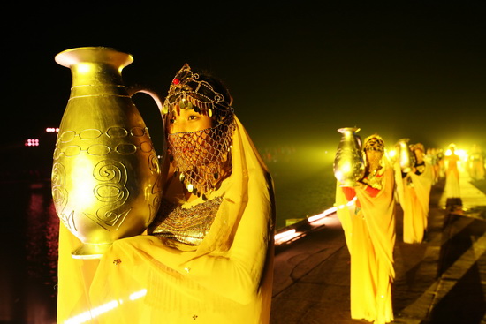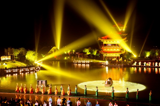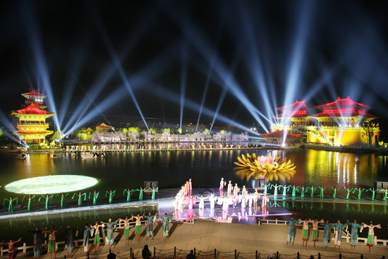 整個演出運(yùn)用大量的科技手段,制造出夢幻的效果,把人們的記憶拉向一千多年前的那個輝煌朝代。