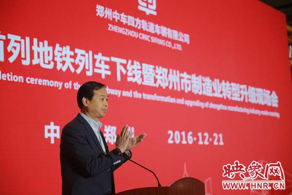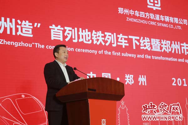 期間,河南省政府副秘書長王夢飛宣讀省委省政府賀信,中車青島四方機(jī)車車輛股份有限公司總經(jīng)理馬云雙代表投資方介紹企業(yè)產(chǎn)品產(chǎn)業(yè)情況,“鄭州造”首列地鐵列車用戶方鄭州市軌道交通有限公司黨委書記、董事長、總經(jīng)理張洲致辭;鄭州市政府市長程志明分別做重要講話。