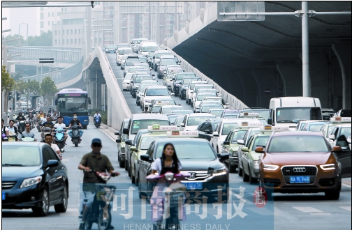 在大學(xué)路、嵩山路、桐柏路下橋口,車輛排隊下橋的情況也很嚴(yán)重。