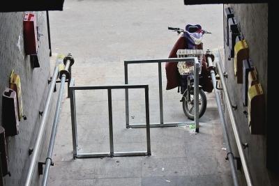 樓洞口安上了鐵柵欄,阻止了電動(dòng)車(chē)的通行。