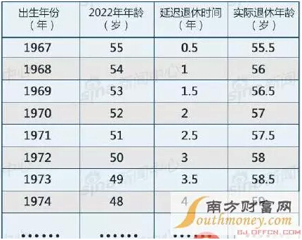 以55歲退休為標(biāo)準(zhǔn),假定每年延長退休時(shí)間為6個月,自方案實(shí)施起,逐年累計(jì)遞增,直到達(dá)到新擬定的退休年齡。