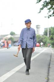 聽到提醒,楊松云利落地彎腰撿起竹椅下的拐棍,夾在腋下,然后邁著大步沿著公路走去。最多的時候要逛6個多小時,每次都自己回家。楊松云說,自己過去彈棉花太忙,基本沒時間出門,現(xiàn)在閑了、享福了,還是要多走走,“把過去沒逛的街逛回來”。