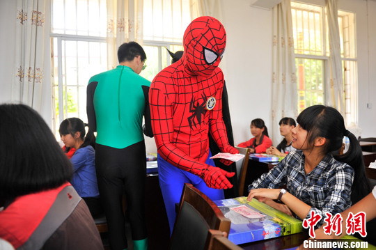 5月29日,在六一兒童節(jié)來臨之際,祥鵬航空的安全員變身超級(jí)英雄,來到云南省昆明市晉寧縣的學(xué)校,為長期資助的困難學(xué)生送上兒童節(jié)禮物。中新社發(fā) 劉冉陽 攝 5月29日,在六一兒童節(jié)來臨之際,祥鵬航空的安全員變身超級(jí)英雄,來到云南省昆明市晉寧縣的學(xué)校,為長期資助的困難學(xué)生送上兒童節(jié)禮物。